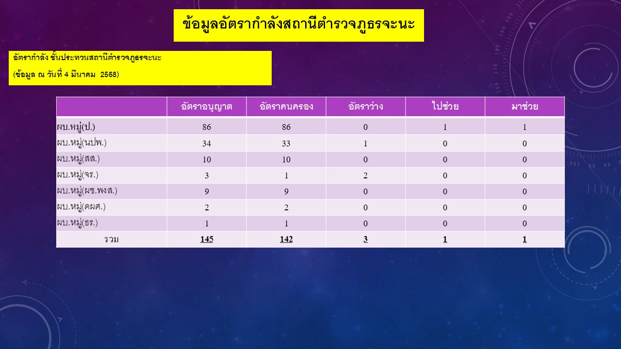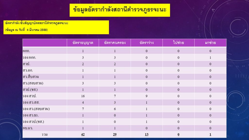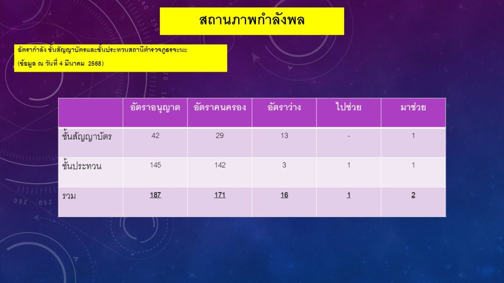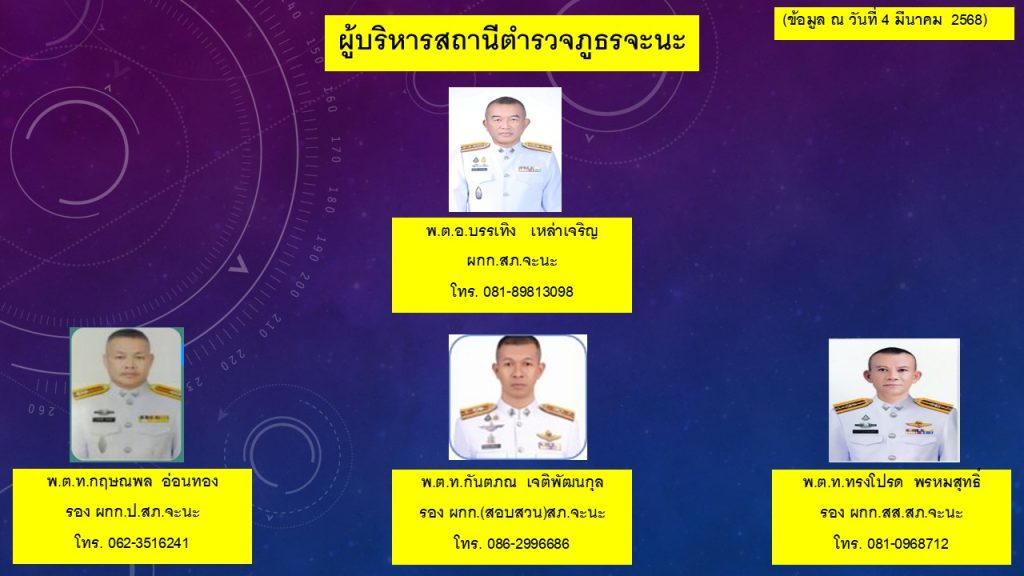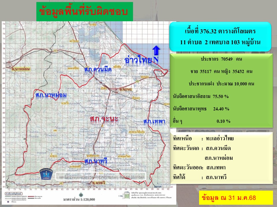 02ข้อมูลผู้บริหาร อัตรากำลังและพื้นที่รับผิดชอบ 7 ธันวาคม 2566 โดย admin / ไม่มีหมวดหมู่ Post Views: 111 ผู้บริหารและอัตรากำลังพลสถานีตำรวจภูธรจะนะ พื้นที่รับผิดชอบ สถานีตำรวจภูธรจะนะ FacebookFacebookXXLINELine