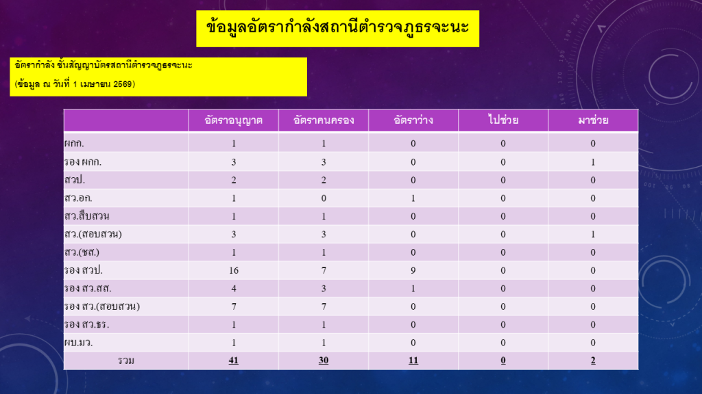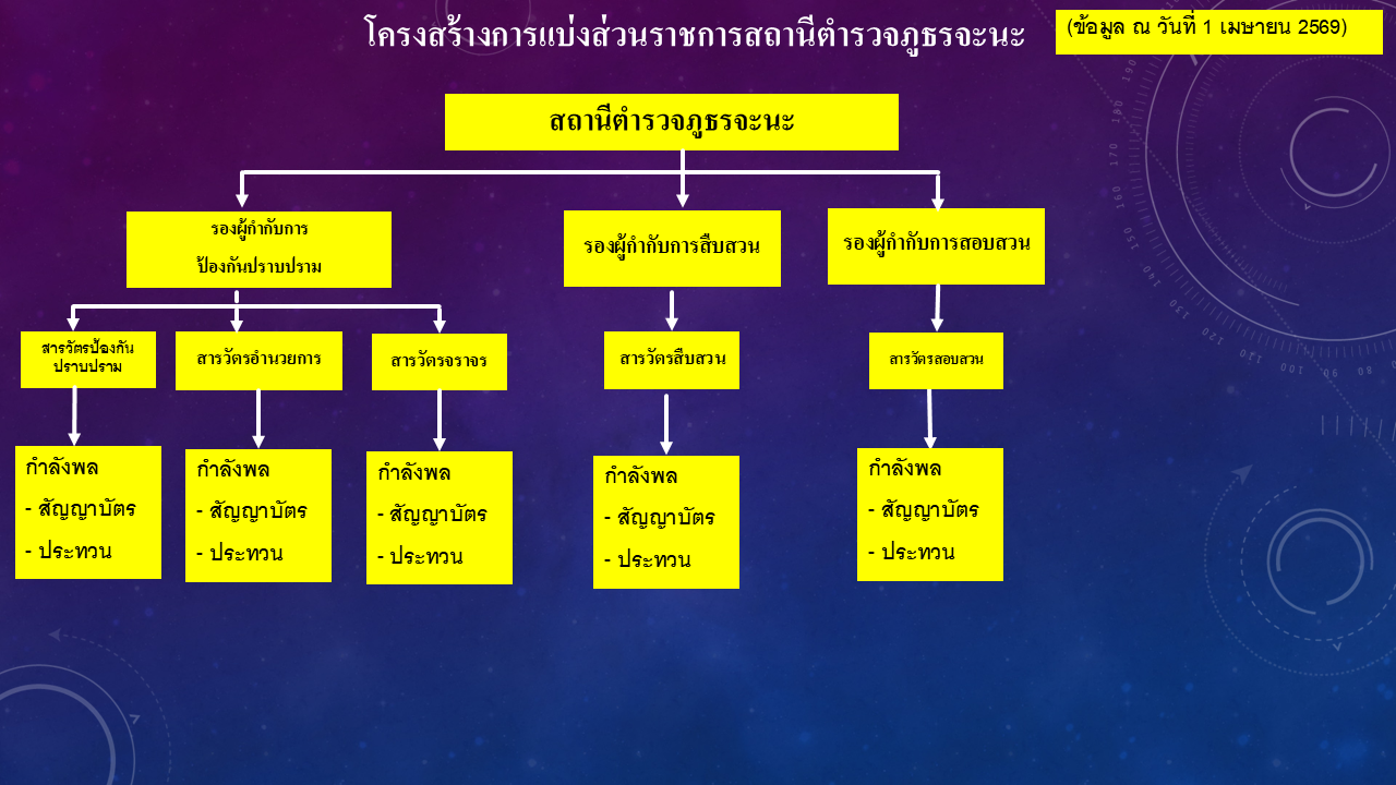 02ข้อมูลผู้บริหาร อัตรากำลังและพื้นที่รับผิดชอบ 7 ธันวาคม 2566 โดย admin / ไม่มีหมวดหมู่ Post Views: 113 ผู้บริหารและอัตรากำลังพลสถานีตำรวจภูธรจะนะ FacebookFacebookXXLINELine