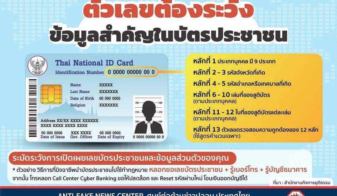 ตัวเลขต้องระวังข้อมูลในบัตรประชาชน