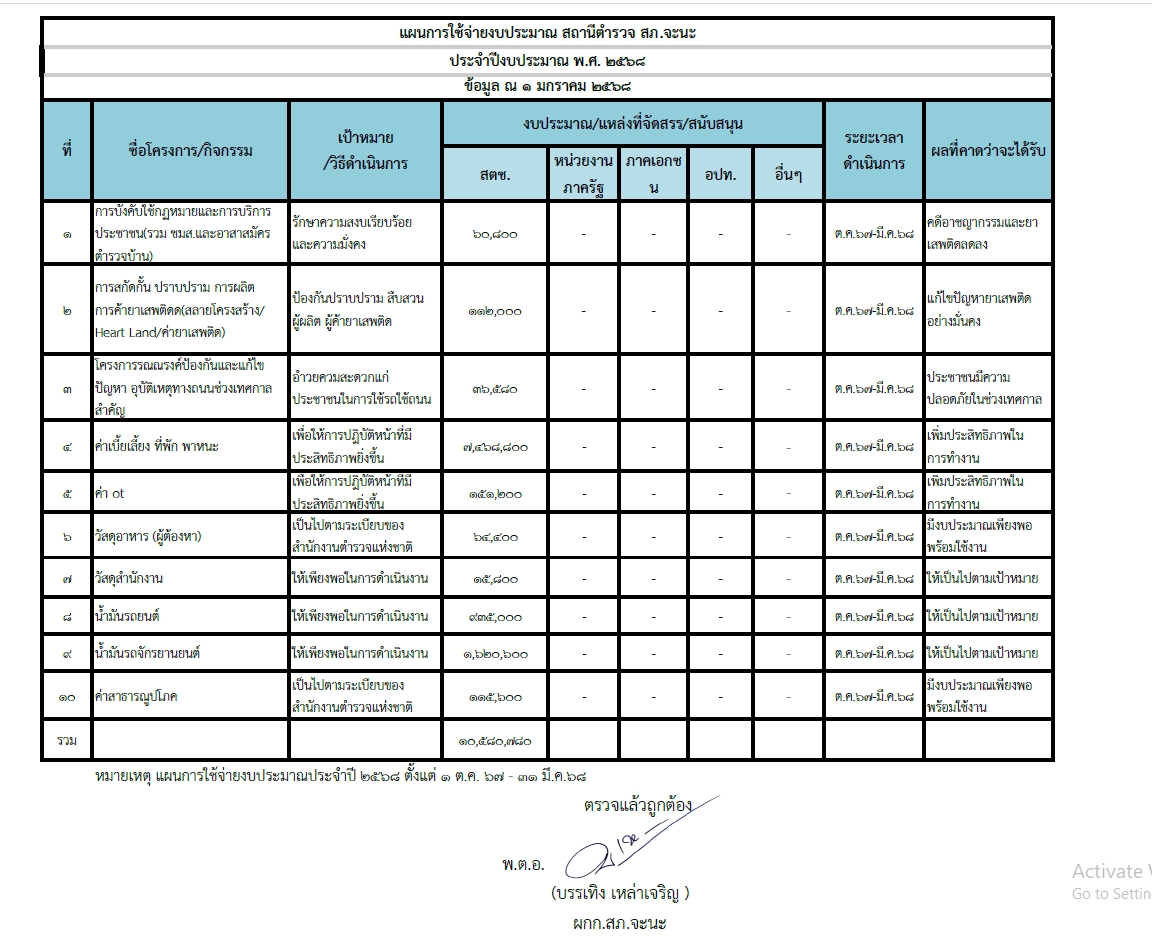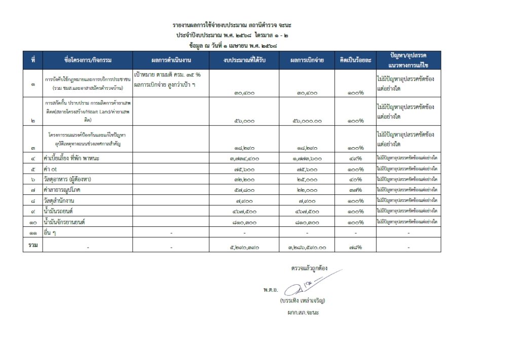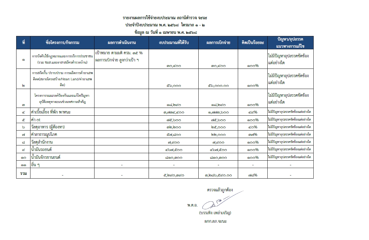 012แผนการใช้จ่ายงบประมาณประจำปีและการรายงานผล 5 มกราคม 2567 โดย admin / ไม่มีหมวดหมู่ Post Views: 67 รายงานผลการใช้จ่ายงบประมาณ รอบ 6 เดือนแรกของปีงบประมาณ 2568 ปัญหาอุปสรรคข้อเสนอแนะ แผนการใช้จ่ายงบประมาณ สถานีตำรวจภูธรจะนะประจำปีงบประมาณ พ.ศ.2568 ดาวโหลดไฟล์ รายงานผลการใช้จ่ายงบประมาณ สถานีตำรวจภูธรจะนะประจำปีงบประมาณ 2568 ห้วง ต.ค.67-มี.ค.68 FacebookFacebookXXLINELine
